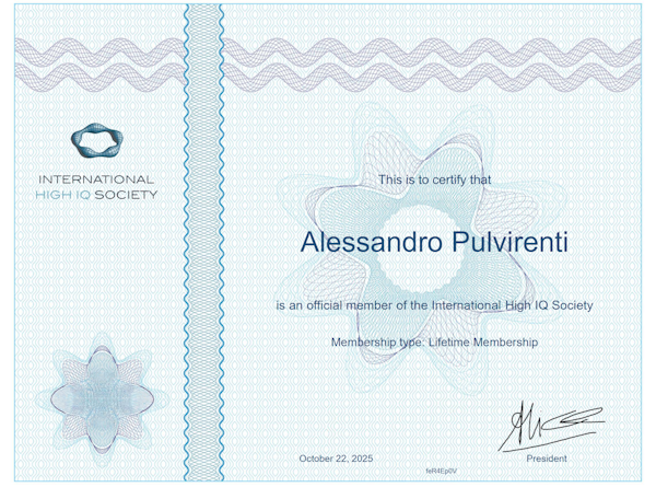 Membro della IHIQS, società internazionale riservata a chi rientra nel 5% più intelligente della popolazione mondiale.